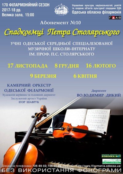 Ученики Школы Столярского в сопровождении Камерного оркестра Одесской филармонии, дирижёр – Владимир Дикий.