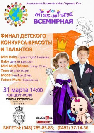 31-го марта в 14:00 состоится финал детского конкурса красоты и талантов Mini Miss&Mister Всемирная.