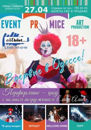 редставляем Вашему вниманию тематическую режиссерскую постановку по мотивам пьесы «Алиса в стране чудес», 3-х часовой спектакль-погружение.