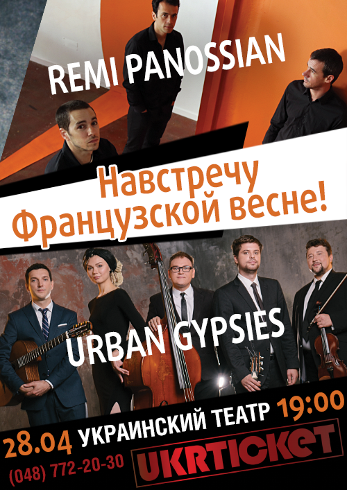 28 апреля в 19:00 на сцене Украинского театра в рамках Французской весны 2018 состоится выступление Remi Panossian Trio (Франция) и Urban Gypsies (Украина).