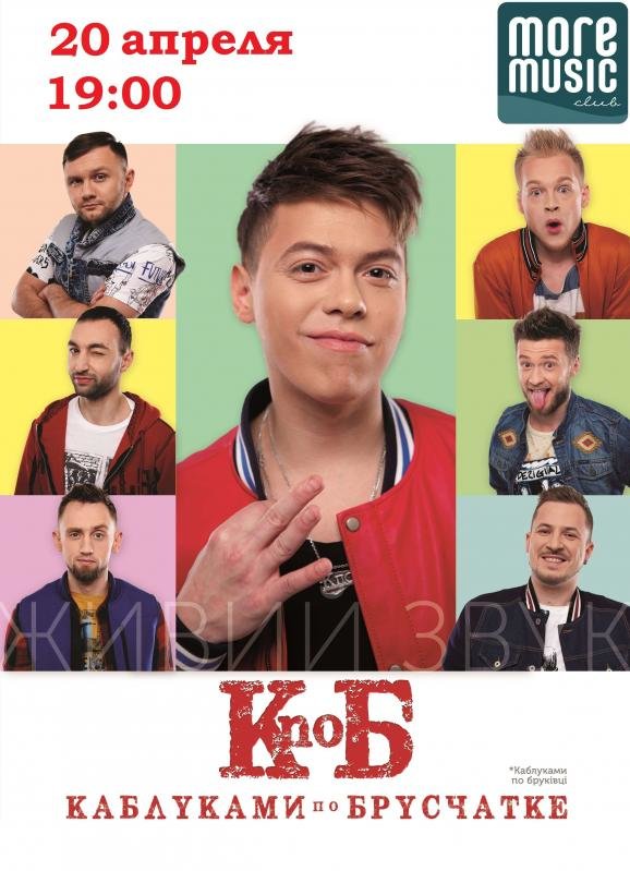 Каблуками по Брусчатке (КпоБ) – это ураган хорошего настроения, нежности и харизмы! Каждая песня – это мини-спектакль с зажигательными танцами в виртуозном исполнении группой искренних и веселых песен о жизни и любви. Участники коллектива прошли непростой путь от театральных сцен и симфонических оркестров до больших концертных площадок, фестивалей и всеукраинских телепроектов. Каблуками по Брусчатке (КпоБ) делают незабываемое шоу, настоящий праздник и задают хорошее настроение с первых нот!