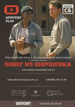 Mystery Play – это абсолютно новый формат развлечения для Одессы. Такие мероприятия находятся на пике популярности в Киеве и Харькове и представляют собой смесь кинематографа и театральной постановки, где зрители сами участвуют в прохождении сюжетной линии. В Одессе впервые пройдет серия игр с погружение в сюжет легендарного фильма «Побег из Шоушенка» с элементами квеста, в которых вы сможете принять участие в качестве героев фильма.