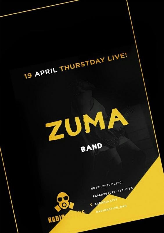 В этот четверг врываются любимые вечера с живой музыкой в Radioactive Arcadia — LIVE THURSDAY, танцуем с группой ZUMA band.