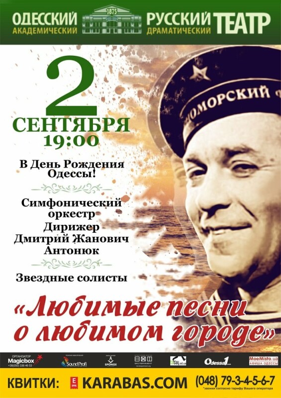 Концерт « Любимые песни о любимом городе» в Одессе состоится 02 сентября 2018 г, 19:00, Одесский академический русский драматический театр.