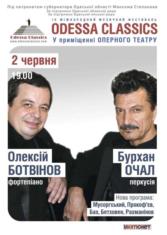 Две звезды мировой музыкальной сцены Бурхан Очал (Турция, культовый перкуссионист Востока, выступающий во всех жанрах – этно, классика, поп, джаз, фолк и тд) и пианист Алексей Ботвинов (Украина, известен в мире своими интерпретациями Рахманинова и Баха, Президент фестиваля ODESSA CLASSICS) – создали в 2010 году уникальный проект «Бах.Перезагрузка». В проекте была представлена не имеющая аналогов в современном музыкальном процессе версия фундаментального шедевра европейской цивилизации «Гольдберг Вариаций» Баха в сопровождении ориентальных ритмов, основанных на древних суфийских традициях. Проект прозвучал более 20 раз – в том числе в Стамбуле, Париже, Цюрихе, Базеле, Абу-Даби, Джазовом фестивале в Монтре. Музыканты порадовали и украинскую аудиторию – 6 концертов с огромным успехом прошли в Одессе, Киеве, Львове, Белгород-Днестровской крепости.