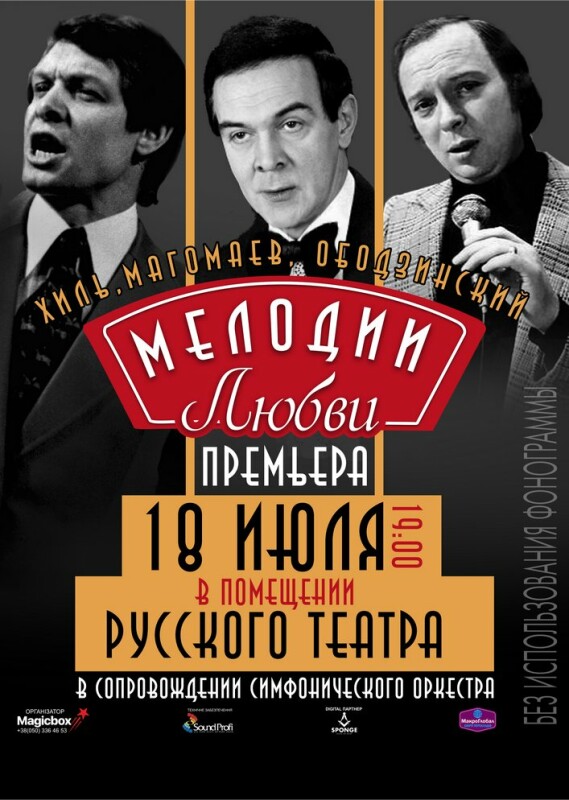 18 ИЮЛЯ в 19.00 в РУССКОМ ТЕАТРЕ состоится премьера концертной программы «Мелодии Любви», посвященной творчеству настоящих легенд советской эстрады – Муслима Магомаева, Валерия Ободзинского, Эдуарда Хиля.