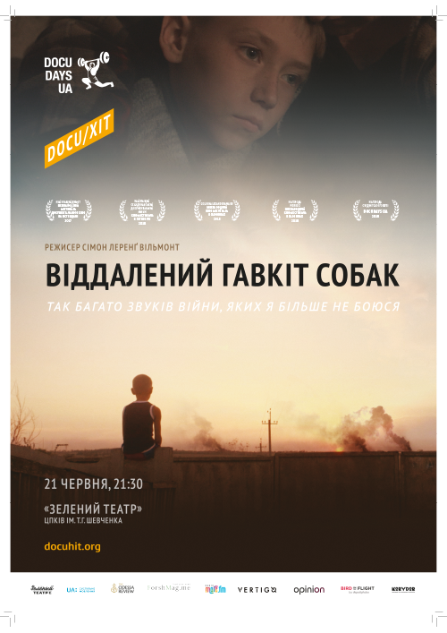 «ОТДАЛЕННЫЙ лай собак» 21 ИЮНЯ | 21:30 Снятая на линии фронта, на востоке Украины, лента датского режиссера Симона Леренґа Вильмонт «Удаленный лай собак» наблюдает за жизнью 10-летнего Олега, который живет с любимой бабушкой в селе Гнутово в Донецкой области. Фильм фиксирует, как естественная борьба ребенка за познание мира переплетается с опасностями и вызовами, приносит война. Лента получила ряд наград на Международном фестивале документального кино в Амстердаме, на кинофестивале в Гетеборге и в Салониках. На Docudays UA в Киеве студенческое жюри фестиваля отметило этот фильм главной наградой.