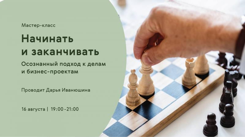 16 августа приглашаем вас на мастер-класс «Начинать и заканчивать: Осознанный подход к делам и бизнес-проектам», который поможет вам лучше узнать свои сильные стороны и овладеть техниками увеличения эффективности в бизнесе.
