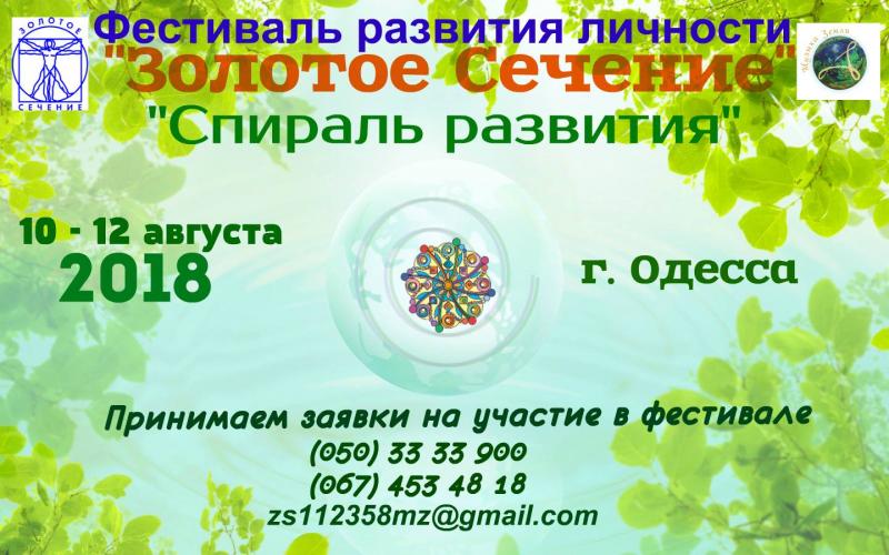 »Золотое сечение" – мультиформатный фестиваль, объединяющий мастеров различных направлений психологии, философии, минералогии, астрологии, нумерологии, рунологии, духовных практик, ведических знаний и традиций, систем оздоровления, трансформации и творчества.