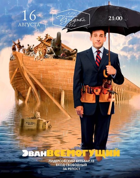 Один КОКТЕЙЛЬ = одно место. «Э́ван Всемогу́щий» — американская комедия 2007 года, снятая режиссёром Томом Шэдьяком. Является продолжением комедии 2003 года «Брюс Всемогущий» с Джимом Керри в главной роли. #артусадьба #одесса #кино#киноподоткрытымнебом #одесса#концерт #дети #odessa