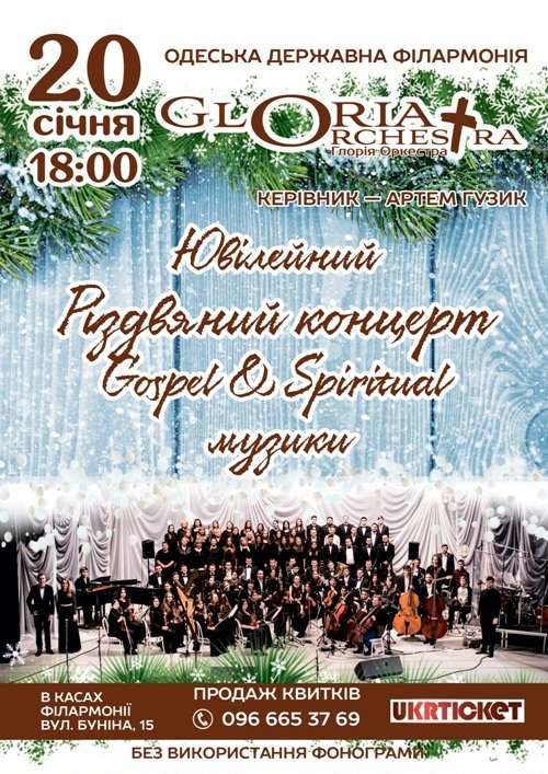 Gloria Orchestra - это симфонический оркестр и хор которому в этом году исполняется 5 лет. В составе музыканты из разных концов Украины исполняют музыку в стиле Gospel & Spiritual. Участники коллектива - это порядка 100 профессиональных музыкантов христиан которые занимаются этим делом безвозмездно и в этом его уникальность. Рождество это особый праздник для каждого культурного человека и в эти праздничные дни мы хотим погрузить Вас в особую атмосферу сути этого события! Для этого приготовлена насыщенная программа которая вот уже пятый год привлекает многих зрителей и наполняет зал Государственной Филармонии особым теплом и радостью этого праздника! Ждем Вас!