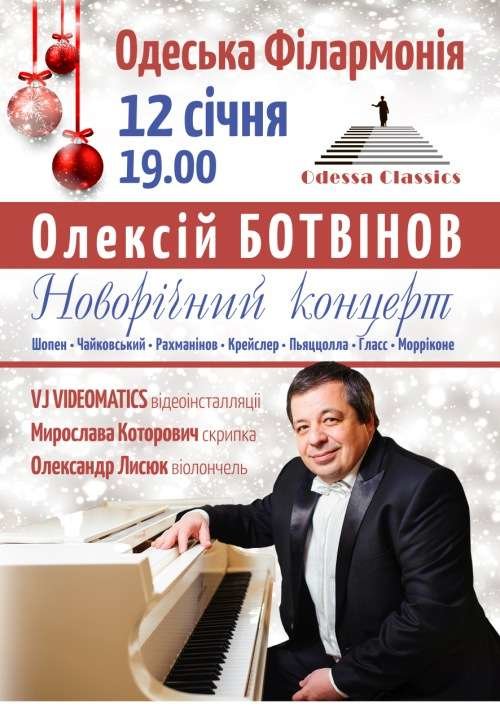 12 января, накануне Старого Нового года, в Большом Зале Одесской Филармонии вас ждет музыка, исполненная радостных, ярких, праздничных эмоций. Шедевры Шопена, Рахманинова, Крейслера, Франка, Пьяццоллы, Гласса, Морриконе создадут истинно новогоднее волшебное настроение! Партнерами Маэстро в праздничном Гала-концерте выступят замечательные молодые музыканты Мирослава Которович (скрипка) и Александр Лысюк (виолончель).