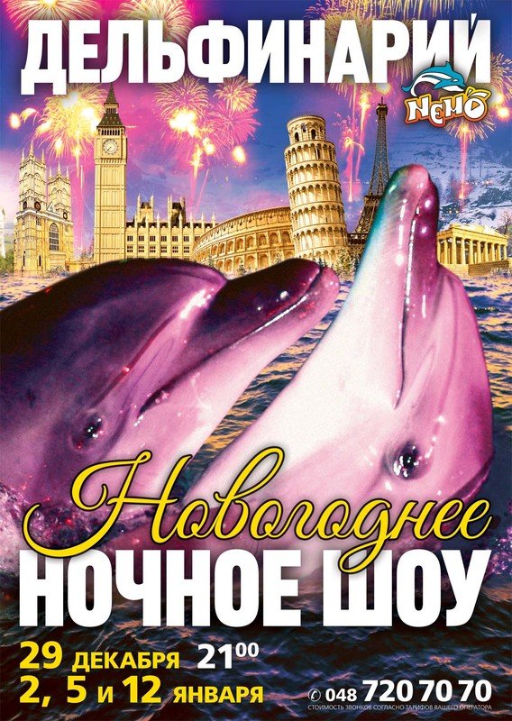 Новое зрелищное шоу в режиссерской постановке. Вы узнаете, как отмечают Рождество и Новый год в разных столицах мира, побываете на самых красочных праздниках и погрузитесь в волшебную зимнюю атмосферу. Поистине незабываемое шоу в лучших новогодних традициях с современными спецэффектами и, конечно же, дельфинами.