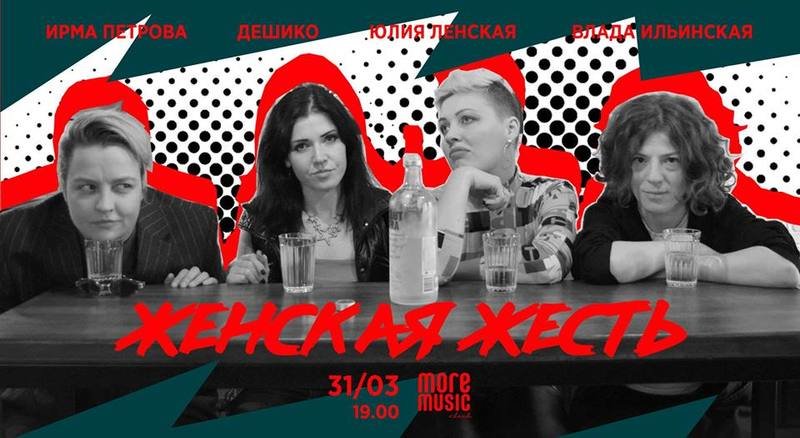 Женская Жесть - это глубокий, провокационный, интеллектуальный разговор о самом интимном, превращающийся в исповедь. Простыми словами мы говорим о сложных вещах, Возвращая слушателям состояние реальности и ощущение мира здесь и сейчас при помощи нецензурной лексики, аккуратно вплетенной в канву эстетических текстов и смелого реквизита, який сопровождает нас протягом всего действа. Все это создает атмосферу интимной самоирониы, которой делятся 4 автора в цельном сюжете из 48 стихотворений.