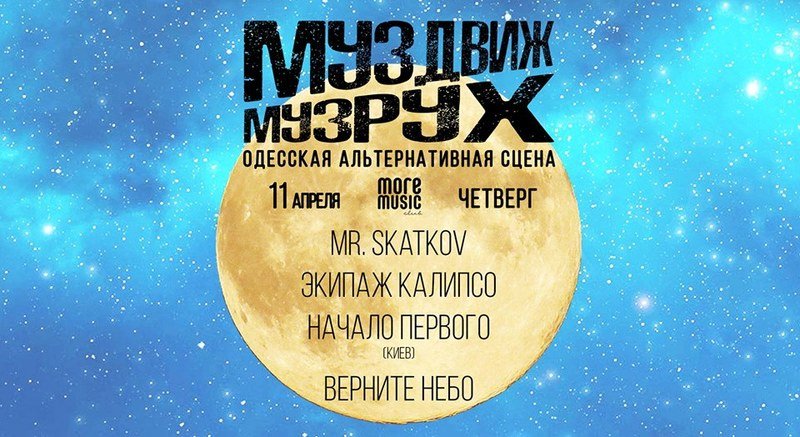 Показать одесскую независимую музыку и дать ей возможность развиваться - главная задача МУЗДВИЖа! Это серия концертов, Которые проводятся в More Music Club с начала 2018 года. НЕ менее двух раз в месяц в рамках МУЗДВИЖа на сцене клуба собираются как молодые, так и опытные группы, и играют 30-40 минут авторского материала.