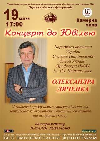 Концерт до Ювилея Народного артиста Украины, Солиста Національної Опери Украины, Профессора НМАУ им. П.І. Чайковського ОЛЕКСАНДРА ДЯЧЕНКА. Концертмейстер НАТАЛІЯ КОРОЛЬКО