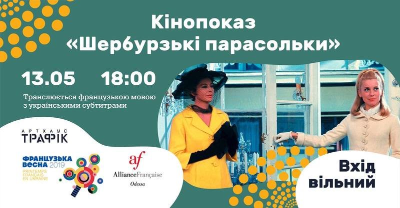 Фильм «Шербурские зонтики» Показ проходит в рамках программы Шарман Легран под эгидой фестиваля "Французская весна", который проводится Французский институт в Украине / Institut français d'Ukraine, Alliance Française Odessa / Альянс Франсез Одесса в сотрудничестве с Arthouse Traffic. «Шербурские зонтики» - мюзикл, который запомнился зрителям-современникам фильма своей необычностью - в нем пели все. Не только главные герои, но и обслуживающий персонал автостанции. Это фильм-легенда, который точно не оставит вас в стороне. Ни сюжетом, ни песнями Юная Женевьева работает в семейном галантерейном магазинчике - продает зонтики. Она влюблена в автомеханика Ги, и тот отвечает ей взаимностью. Но вскоре Ги забирают в армию и отправляют в Алжир. Расставаясь, влюбленные обещают ждать друг друга. Затем Женевьева узнает, что она беременна, а вестей от любимого все нет, и девушка соглашается на брак с состоятельным и солидным мужчиной ... Чем закончится эта любовная история? Будет хэппи-энд? Узнаем на кинопоказе в Urban Music Hall уже совсем скоро