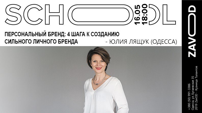 а ты знаешь самый быстрый и прямой путь донести идею бизнеса и ценность своего продукта, чтобы клиенты выбирали именно тебя?16 мая в 18:00 продюсер персональных брендов Юлия Лящук проведет лекцию на тему «Персональный бренд: 4 шага к созданию сильного личного бренда».На лекции мы поговорим о том, что такое персональный бренд. Развеем мифы, заблуждения и страхи, связанные с персональным брендом. Разберемся в каких случаях стоит выбрать персональный бренд инструментом продвижения своего бизнеса, а когда можно обойтись без него.Ты получишь алгоритм построения персонального бренда с нуля и полезные рекомендации, основанные на опыте работы с лидерами бизнеса.⠀Ты узнаешь:• как создать аутентичный персональный бренд• в каком случае персональны бренд - идеальный способ продвижения, а в каком - нет• как монетизировать свои знания и опыт• как стать №1 в своей уникальной нише• как выгодно презентовать себя клиентам⠀Продолжительность: 2 часа• 18:00 - 20:00 Лекция о персональном бренде⠀О спикере:Юлия Лящук - продюсер персональных брендов и основатель агентства персонального маркетинга ИКОНА.Вход на лекцию свободный, запись обязательна!⠀Запись и информация по телефону:+38 050 991 33 86До встречи на ZAVOD'e!