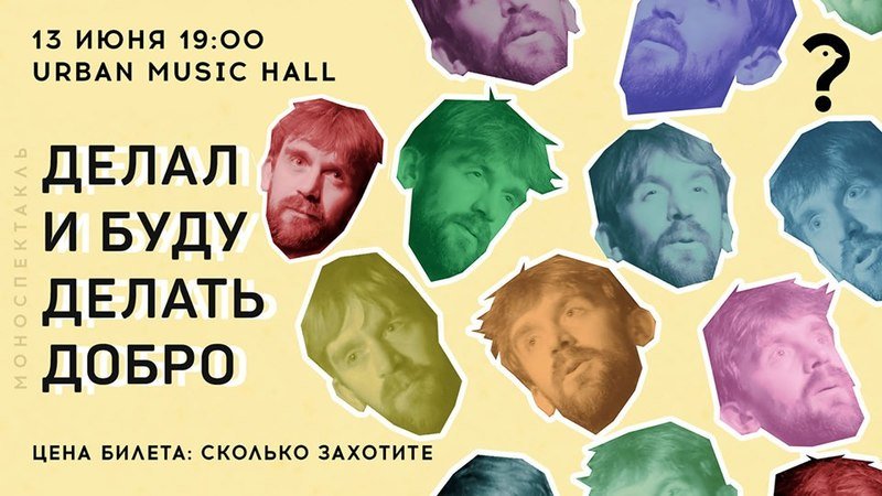 Незаметно и довольно быстро моноспектакль "Делал и буду делать добро" подобрался к своему пятилетию. К этой годовщине прилетел и юбилей автора-исполнителя главной роли - Александра Сердюка, которому исполнится 30 лет. "Делал и буду делать добро" - это мой личный дневник. Он пережил огромное количество трансформаций, внутренних и внешних. Менялся я и вместе с этим менялись истории, настроение и отношение к героям спектакля. Одно знаю точно: неизменными в этой постановке есть тепло и желание вспомнить, а лучше сделать что-то хорошее, позвонить людям, которых давно не слышал. Поэтому рад буду вновь разделить с вами маленькое путешествие берегами этого чудо-спектакля. Спектакль на русском языке. Продолжительность 90 минут.