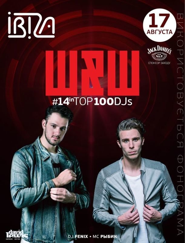 В клубе Ibiza – знаменитый голландский дуэт W&W. Грядет грандиозная танцевальная вечеринка под управлением крутых диджеев. Приходи!