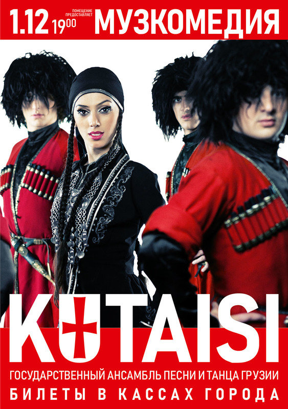 Каждый концерт «Кутаиси» – это потрясающие постановки и хореография, великолепные костюмы и сценография, виртуозное пение и народный оркестр. Как завороженные зрители наблюдают за полетами танцоров, исполняющих в воздухе невероятные трюки, и невозможно отвезти глаз от красоты танцующих грузинских девушек. Столь любимые нами грузинские песни уносят в прекрасный край, и вы ощущаете дыхание гор, пение рек, звонкий голос тамады и легкий вкус прекрасного грузинского вина. Грузия щедро распахивает свои объятия и приглашает всех на праздник песни и танца!