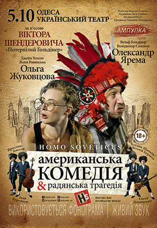 Театр «Ампулка» представляет премьерный спектакль «Homo Soveticus. Американская комедия & советская трагедия» или «HS» по пьесе Виктора Шендеровича «Потерпевший Гольдинер».