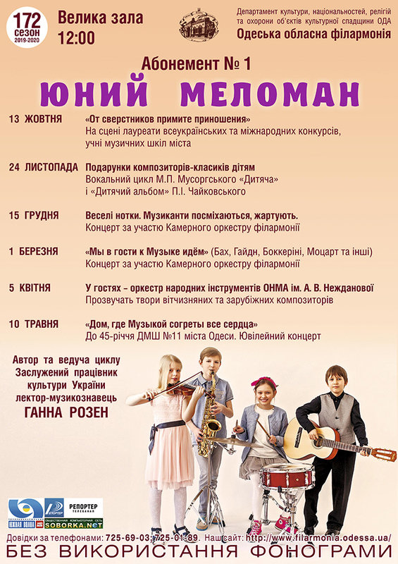 Абонемент «Юный меломан (абонемент №1)» в этом сезоне направлен на обогащение кругозора юных слушателей.