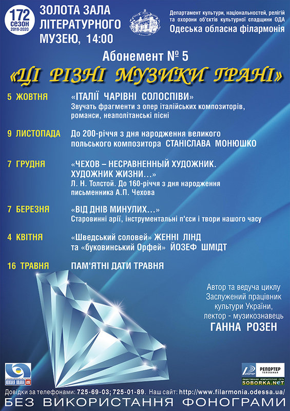Автор и ведущая цикла - заслуженный работник культуры Украины, лектор-музыковед Анна Розен.