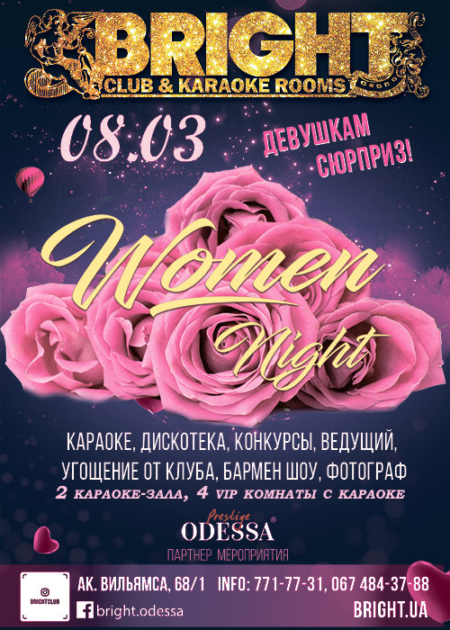 Всем девушкам - сюрприз! Конкурсы, ведущий, караоке, фотограф, дискотека до утра!