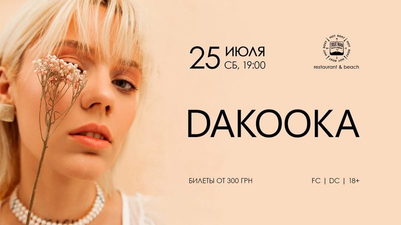 После вынужденной и затянувшееся паузы Dakooka радует Одессу своим лаунж-концертом на берегу моря, Катя представляет свои песни в эксклюзивной подаче-акустическая парадигма в сочетании с романтической психоделикой!