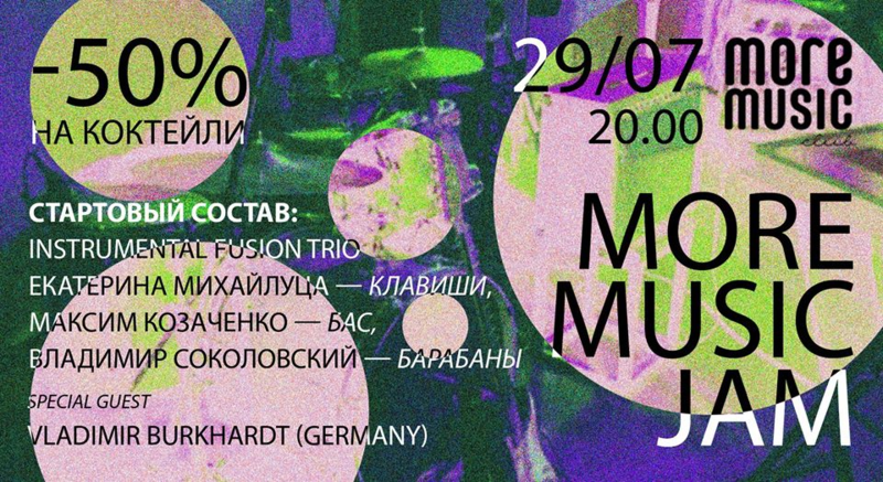 29 июля, традиционно — в среду, ждем музыкантов и слушателей на More Music Jam.