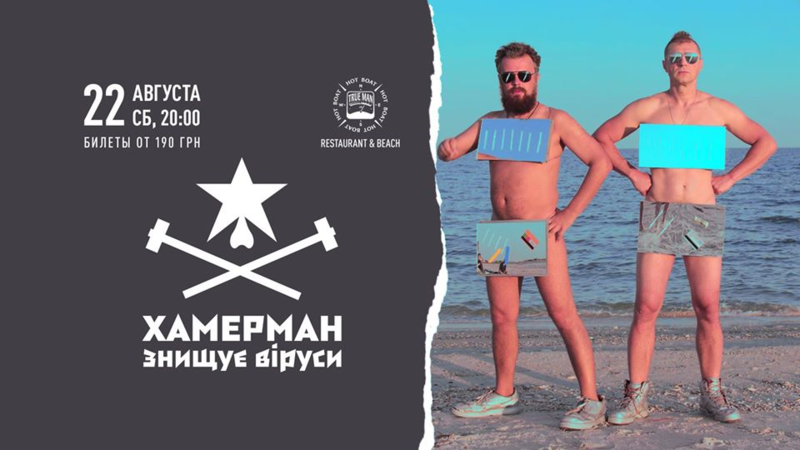 22 августа в True Man Hot Boat группа Хамерман Знищує Віруси!⠀Хамерман Знищує Віруси, которые называют себя «самой адекватной группой Украины», работают на пересечении музыки, концептуального арта и театра. Песенный материал ХЗВ поражает своим разнообразием: в рамках разных шоу, а иногда и одного концерта аккомпанировать им может попеременно струнный квартет, хор, рок-группа и примитивная «минусовка».⠀Больше всего ХЗВ известны своими уникальными сценическими образами, ни один из которых не повторяется дважды. Для их создания используются осьминоги в качества головных уборов, макеты мавзолеев и другие сложные инженерные конструкции, водоэмульсионная краска и шпаклевка, памперсы и перья, золотая пыль, мягкие игрушки и так далее. Понимают это по-разному: в низкоинтеллектуальных пабликах ХЗВ проходят под тегом «деграданты», редкие православные видят в их выступлениях юродство, многие другие — психические и психосексуальные отклонения всех мастей, арт-журналы пишут о «междисциплинарном культурном явлении».⠀