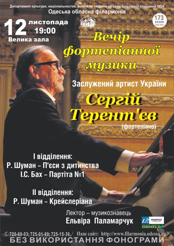 Вечер фортепианной музыки. Заслуженный артист Украины Сергей Терентьев (фортепиано).I отделение:
