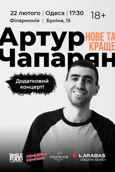 Отличная новость! Артур Чапарян снова будет в Одессе, уже совсем скоро! Программа «Новое и Лучшее», предполагает свежие шутки, которые вы услышите впервые, а так же часть программы с концерта 2019г.