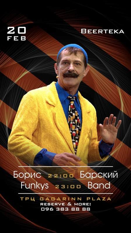 Кавер-бенд «Funkys-band», исполняющий популярные рок хиты с яркими аранжировками, не оставит никого равнодушным и в этот вечер станет отличным музыкальным продолжением, после вечера юмора от Бориса Барского.