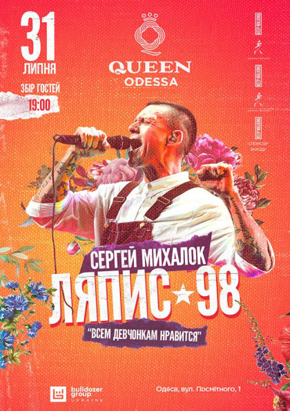 31 июля 2021 года в QUEEN ODESSA состоится концерт "Ляпис-98" и Сергея Михалка в Одессе! Выступление посвящено двадцатилетию культового альбома "Всем девчонкам нравится"! Поэтому собираемся вместе и вспоминаем невероятную атмосферу всех живых выступлений группы! Как можно представить концерт "Ляпис" без толпы танцующих поклонников, которые вместе подпевают каждой песне! Легендарный "Ляпис Трубецкой" возвращается!