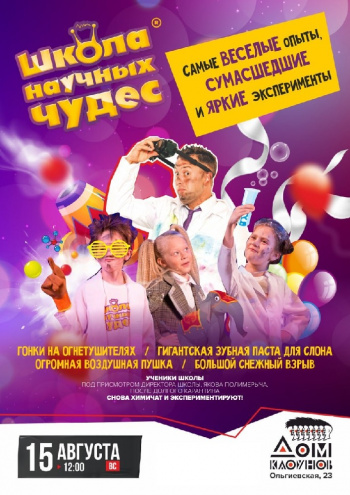 Зрителей ожидают опыты и эксперименты, от которых:Гонки на огнетушителях.Гигантская зубная паста для слона.Огромная воздушная пушка.Большой снежный взрывМы собрали самые веселые опыты и яркие эксперименты!