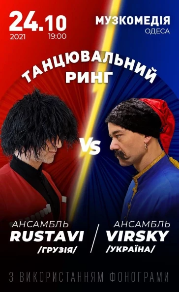 24 октября 2021 в Одесском академическом театре музыкальной комедии им. М. Водяного состоится знаменательное событие - танцевальный батл. Ансамбль им. Вирского и Ансамбль RUSTAVI сойдутся в горячем танцевальном противостоянии в Одессе в рамках большого тура по городам Украины. Несколько лет назад эти знаменитые танцевальные коллективы уже сходились в невероятной и бескомпромиссной битве на одной сцене - результат настолько захватил всех зрителей, у артистов не осталось другого выбора, кроме как сойтись в поединке снова.