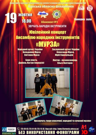 Абонемент №3 «Звучат народные инструменты». Ансамбль народных инструментов «МУРЗА». Народный артист Украины В.МУРЗА, заслуженные артисты Украины О.Мурза, С.Мурза, Ю.Сарапульцев.
