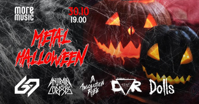 Главная металл-вечеринка этого Хэллоуина! 30 октября в More Music ClubDrop The Roof - alternative, rock, nu-metal, одесская группа, музыканты которого уже не первый год разрывают сцены родного города. Ихний рокенрол посвященный острым социальным проблемам и неразделенной любви.Antirain of Corpses - крепкий трешовий металл, дезметаличний Моторхэд.69 ШАГОВ - альтернативная группа из Николаева (город Первомайск), основанный в 2018 году.Absolution Free - ураган камней и драйвовый женский вокал (groove metal / death metal).Dolls - nu-metal из Одессы.