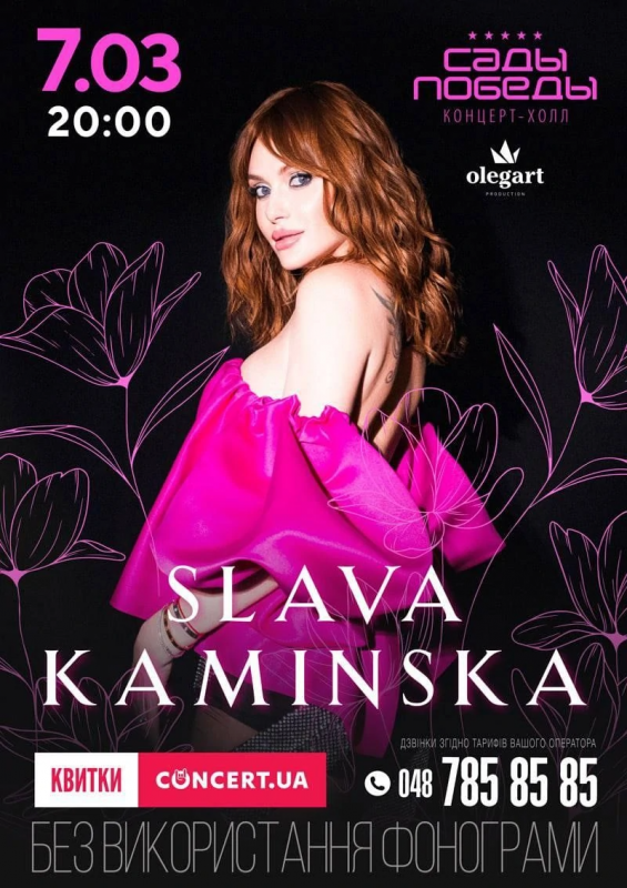 Slava Kaminska в Одессе! Ждем вас 2022-03-07 в 20:00 на площадке Концерт-холл «Сады победы», Одесса.
