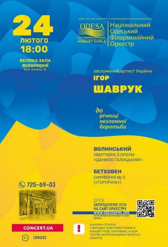 «Річниця незламності» — концерт Національного одеського філармонійного оркестру, що пройде 24 лютого в Одеській обласній філармонії.