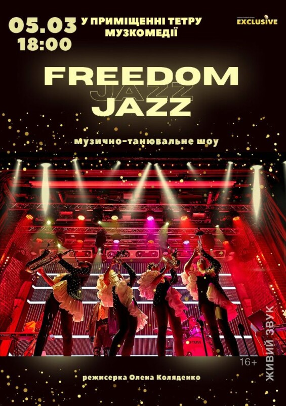 Цей концерт зачарує та піднесе ваші емоції у недосяжну височінь. Адже джаз-кабаре – це візитівка Freedom jazz girls band. У програмі вечора – фрагменти улюблених мюзиклів світової публіки у незвичайному аранжуванні; міні-спектакль, що підкорює легким жіночим гумором; найвідоміші танцювальні хіти, а також інші приємні сюрпризи для публіки. І будьте певні: на місці не всидить жоден, тож готуйтеся до незабутнього свята з Freedom Jazz Show! Побачимось!