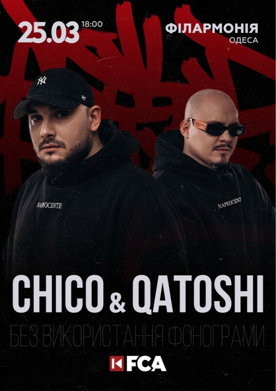 Вже зовсім скоро Chico & Qatoshi дають свій сольний концерт у вашом місті , де разом з вами заспівають улюблені хіти та нові пісні.