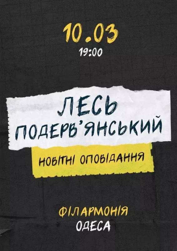 Запрошуємо вас на концерт культового представника українського мистецького андеграунду Леся Подерв’янського! Гостре, актуальне і завжди влучне авторське слово, унікальний стиль та просто безмежний творчий потенціал відомого українця – саме те, що у цей непростий час потрібно кожному.