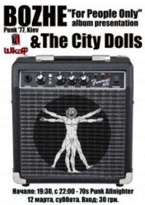 Состоится презентация дебютного альбома "For People Only" киевской андеграундной Oldschool Punk Rock команды BOZHE при поддержке немалоизвестных The City Dolls!