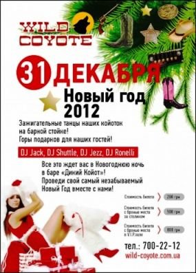 Все это ждет вас в Новогоднюю ночь в баре «Дикий Койот»!