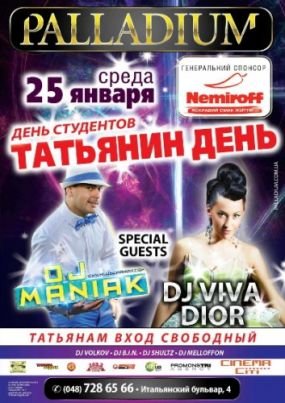 Эксклюзивная вечеринка посвященная Дню Татьяны и Дню Студента.