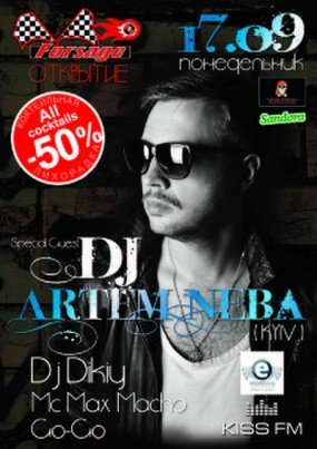 Артем Неба- это всегда невообразимый микс, игра с нескольких носителей одновременно, акапеллы, скретч, стильная и актуальная музыка, беспрерывное общение с публикой и энергетическая волна которая пронизывает с ног до головы. Его сет, это всегда путешествие!