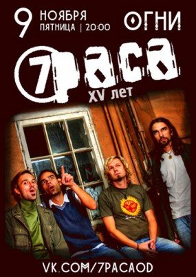«7 Расе» стукнуло, ни много, ни мало 15 лет – самое время всем нам, независимо от нынешнего возраста, семейного статуса и рода занятий, прийти на юбилейные концерты любимого коллектива. Прийти, чтобы вновь спеть вместе с Сашей Растичем про вечное лето, три цвета, Джа, черную весну и поиски рая, насладиться фирменным «сырым» саундом группы, оторваться от земли в концертном драйве и вновь стать ребенком - чистым, добрым и абсолютно счастливым.